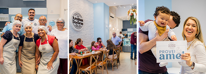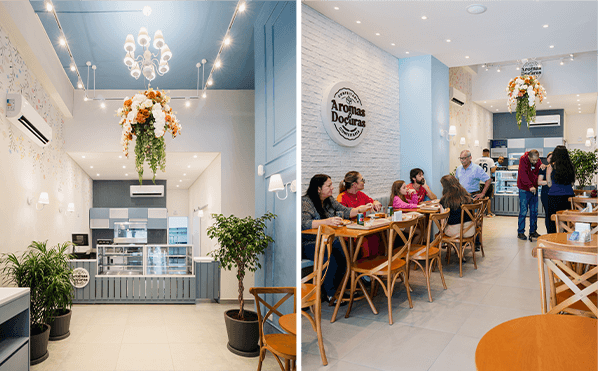 Seja para uma pausa no trabalho, um encontro entre amigos ou uma celebração, a Aromas & Doçuras oferece um espaço aconchegante e sabores que confortam, como um abraço, e momentos que ficam na memória.